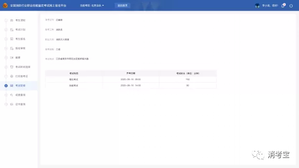 考生报名成功后,等待编排,编排成功后,可在此界面进行查阅;