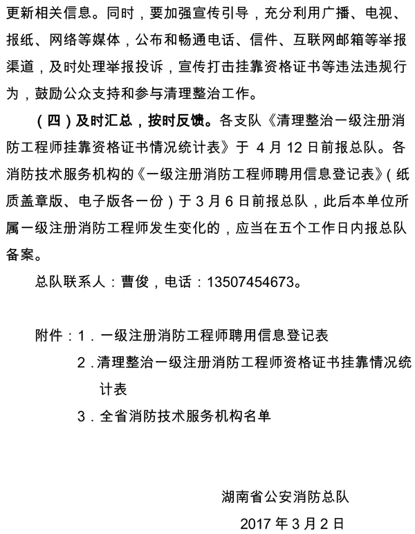 湖南清理整治一级注册消防工程师资格证书挂靠问题的通知